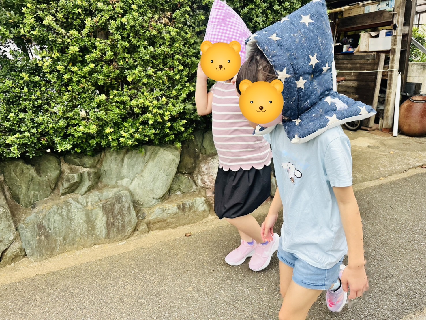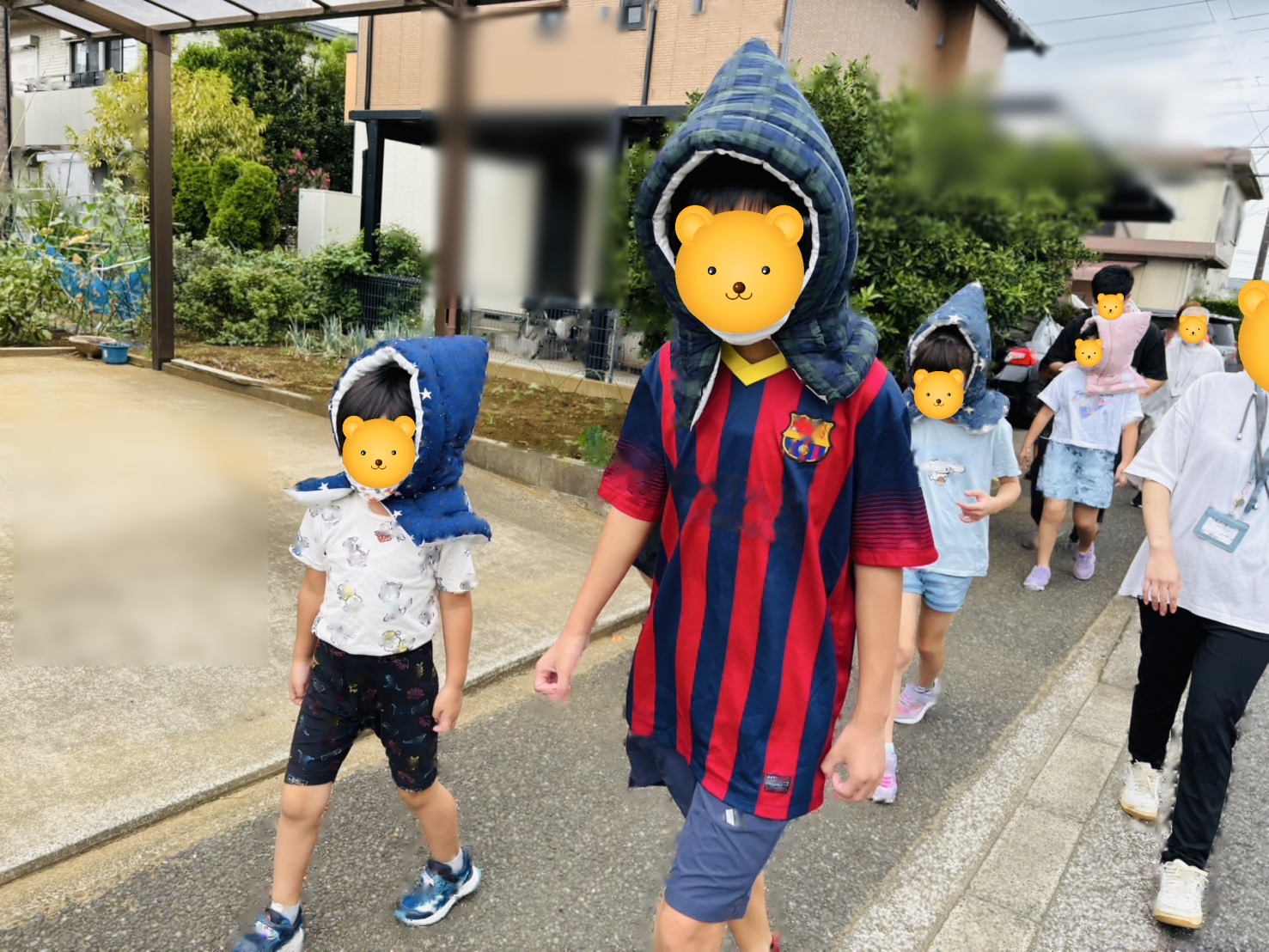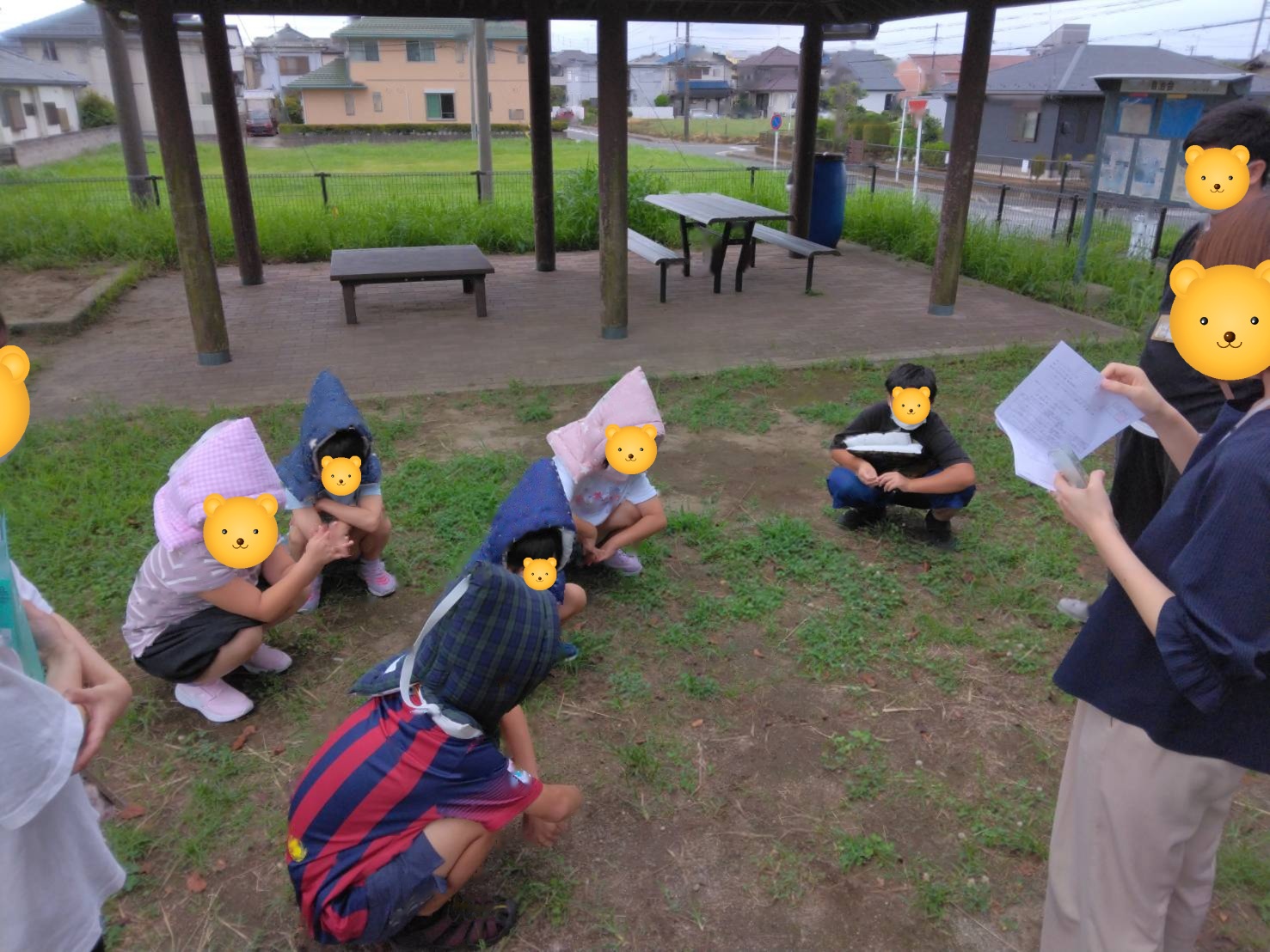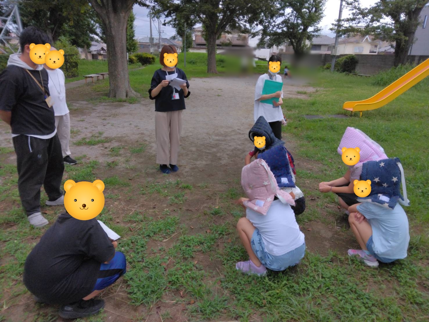 揺れが収まった後は、防災頭巾をしっかりとかぶり、避難場所として設定している近くの公園へ移動しました。🌳