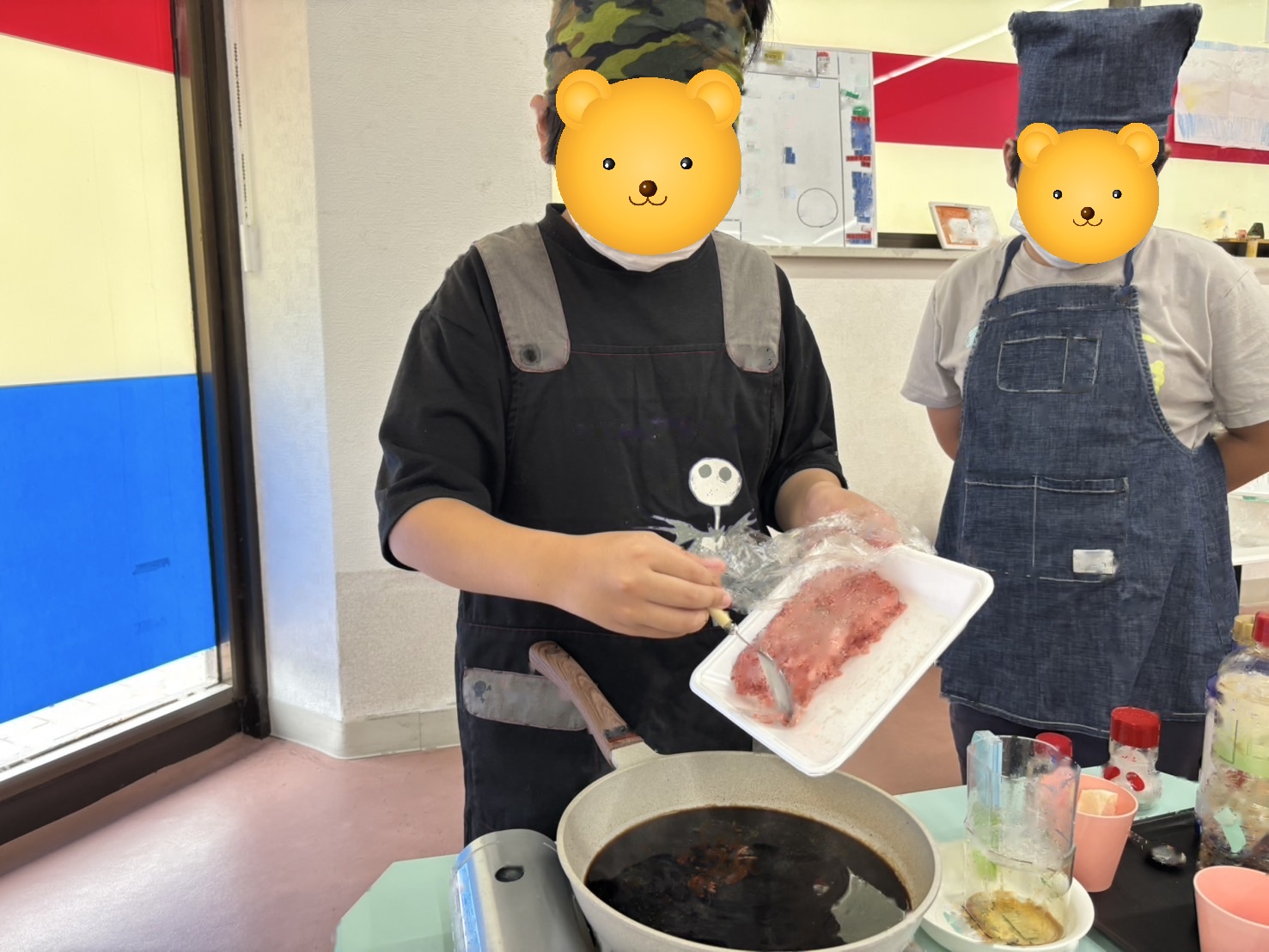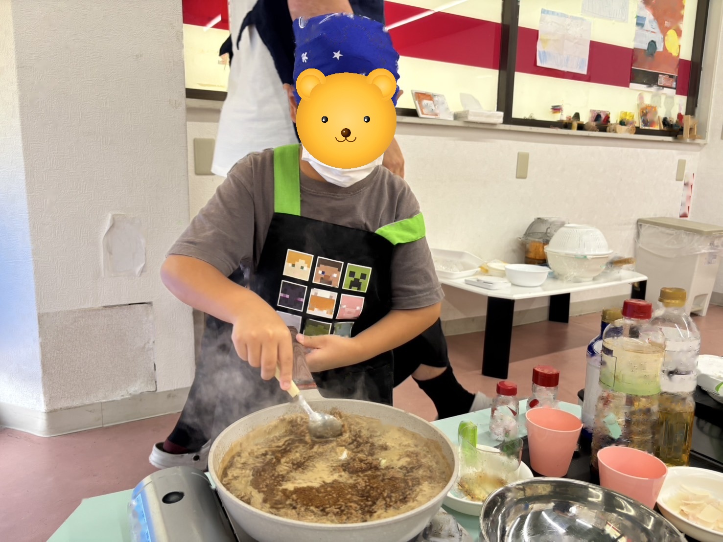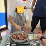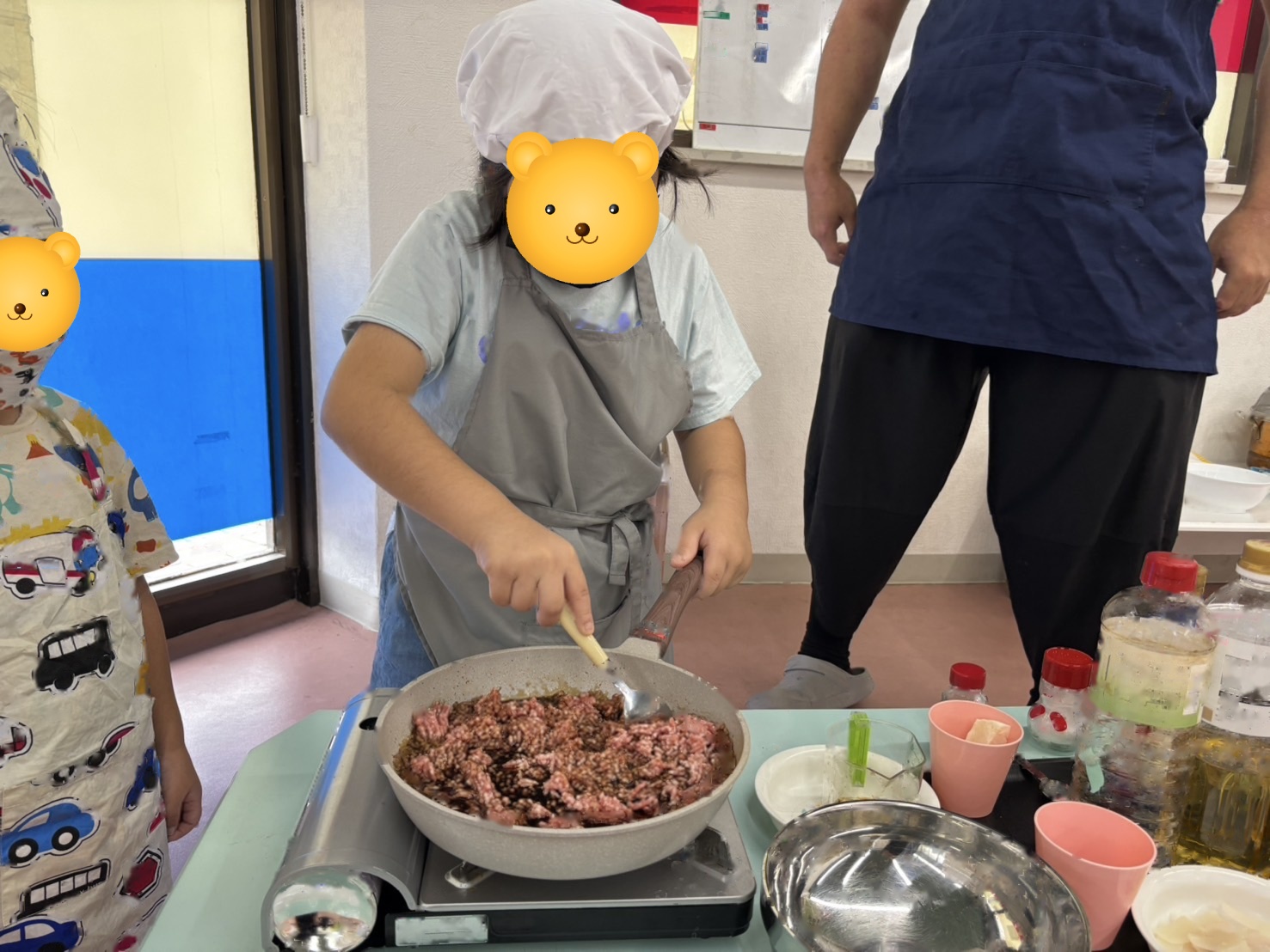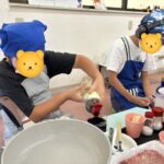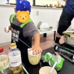子どもたちの好みに合わせて味を調整しながら、みんなで「もうちょっと濃いめ」「ニンニクマシ」などと楽しそうに話し合いました。