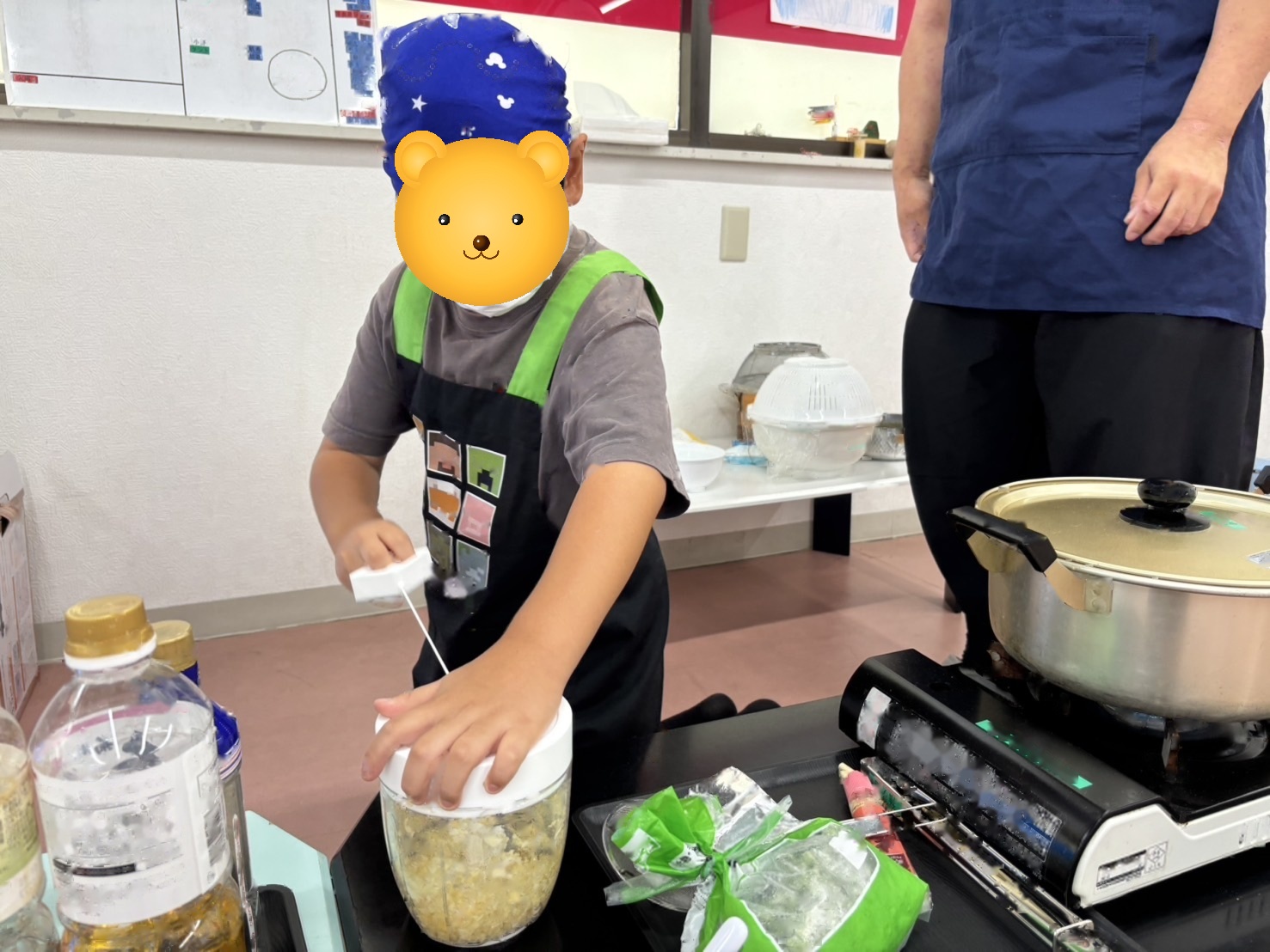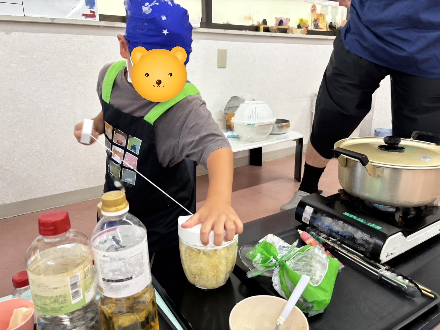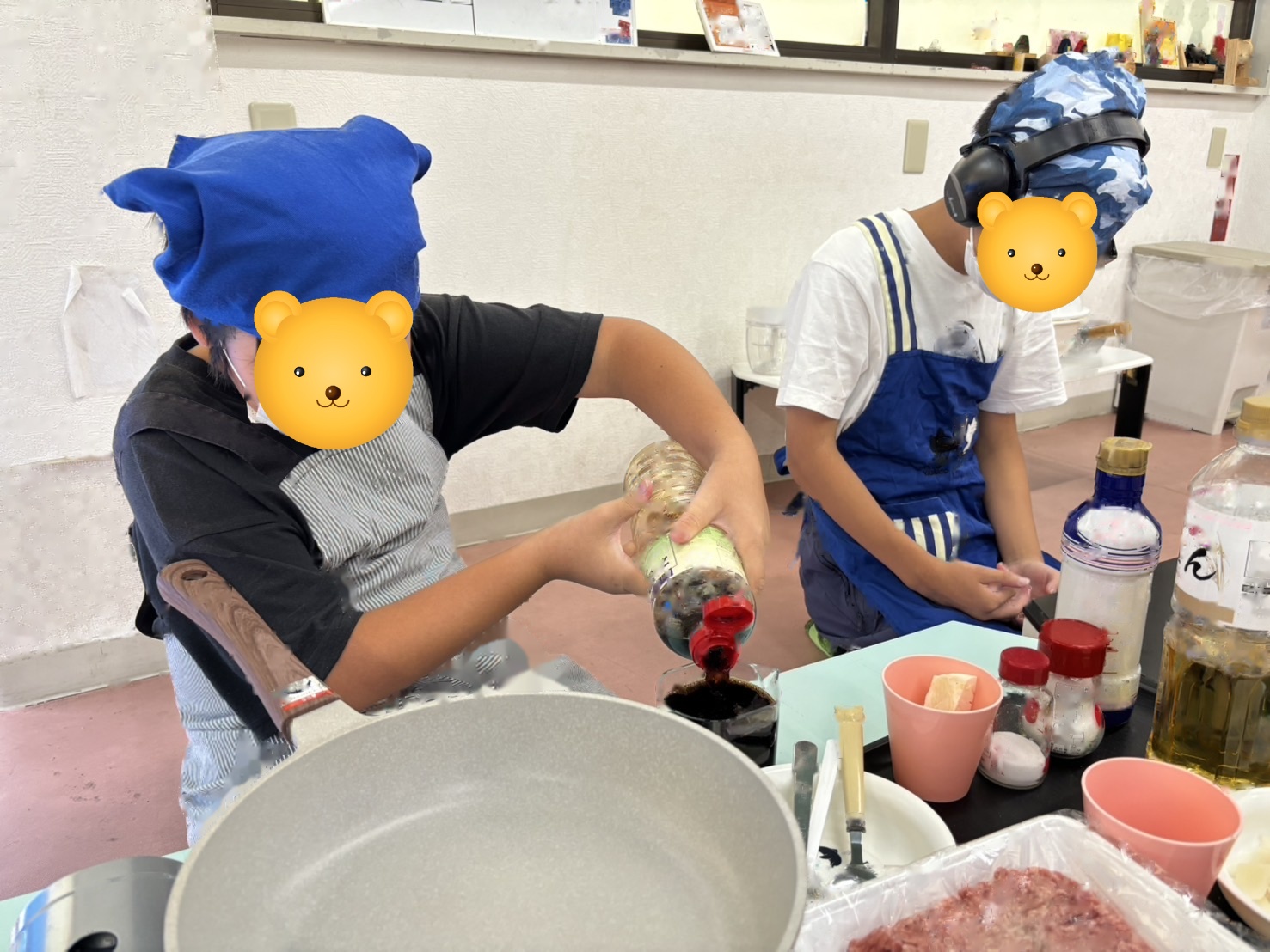 子どもたちの好みに合わせて味を調整しながら、みんなで「もうちょっと濃いめ」「ニンニクマシ」などと楽しそうに話し合いました。
