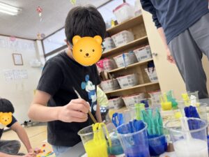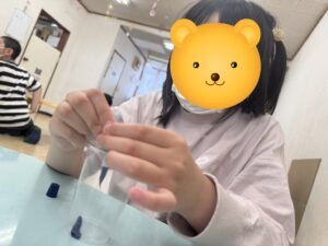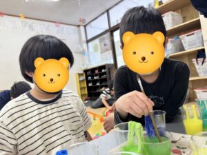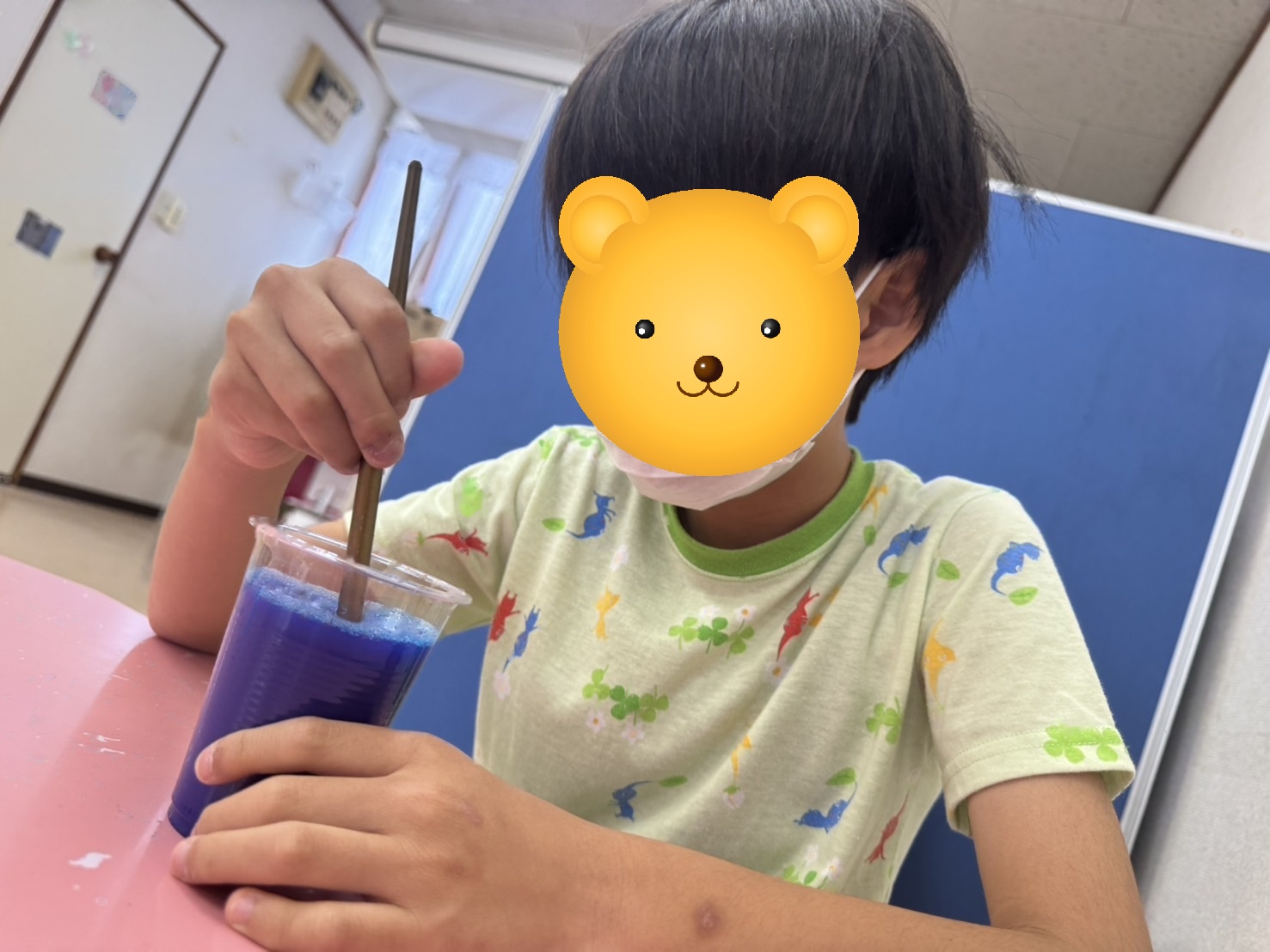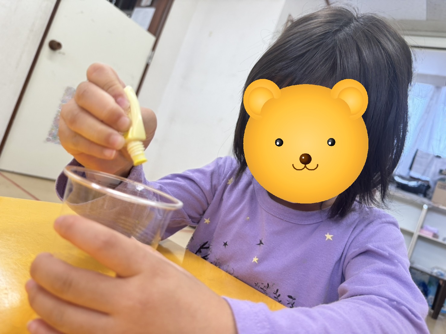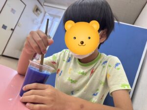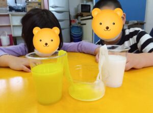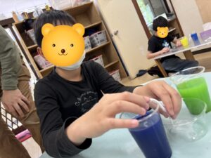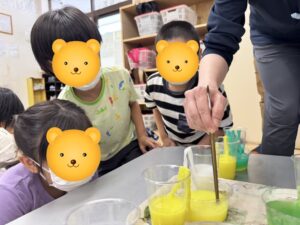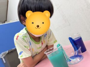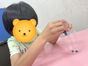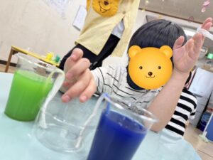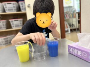 さらに空のカップに2つの色が混ざると…?何色になるの〜!?とみんな大注目👀‼