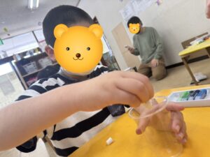 子どもたちは、上から見たり、横から見たり…観察モードに突入🔬✨