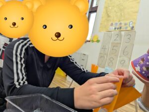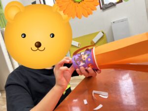 色紙に付いている両面テープを、はがしていきましょう!(^^)!