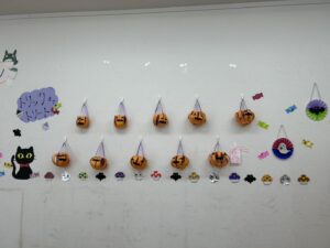 作成したハロウィンバッグは、10月の間、壁に飾らせていただきました✨
