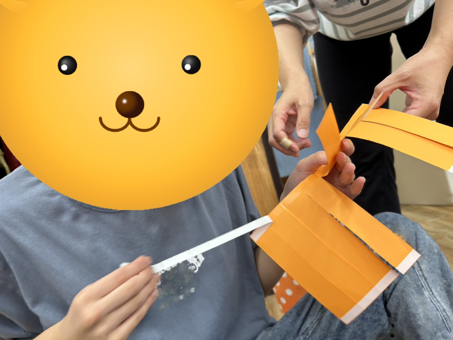 ③顔のパーツを付けよう&持ち手を付けよう