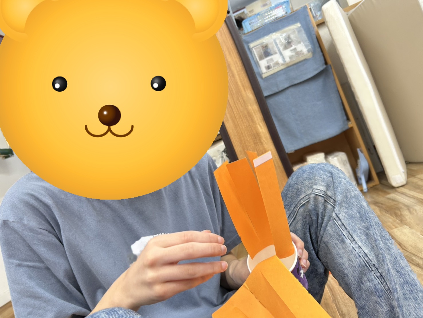 色紙に付いている両面テープを、はがしていきましょう!(^^)!