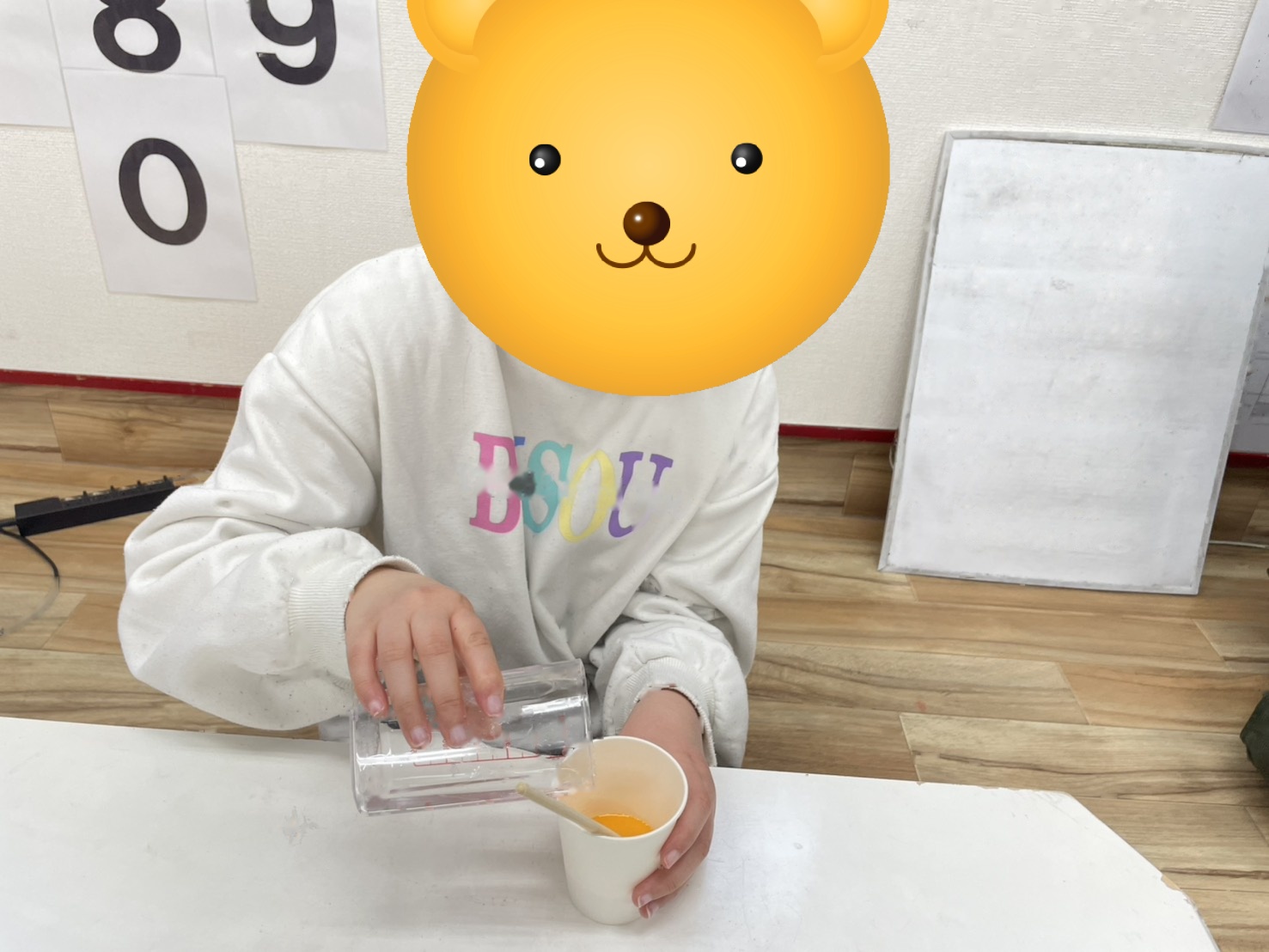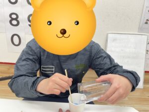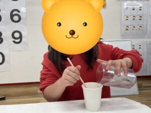 スライム作りに必要なホウ砂 こぼさないよう水に、ゆっくり混ぜていこう!