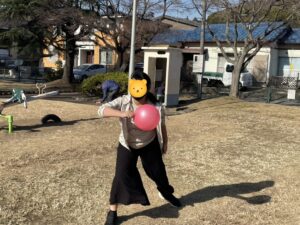 ボールを遠くに向かって「えいっ!」🥎